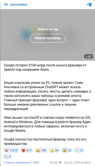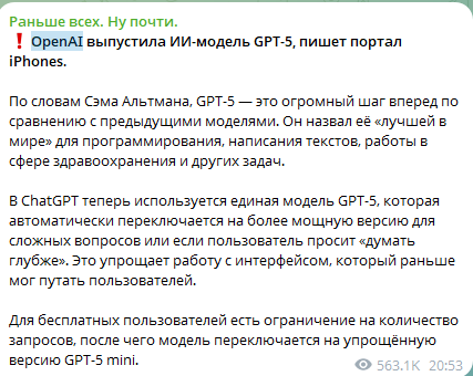 1. OpenAI выпустила GPT-5 и браузер Atlas со встроенным ИИ