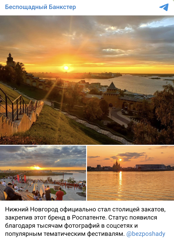 Нижний Новгород официально закрепил за собой статус «Столицы закатов», зарегистрировав этот бренд в Роспатенте.