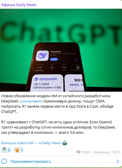 2. DeepSeek вызвал вопросы о необходимости масштабных инвестиций в ИИ