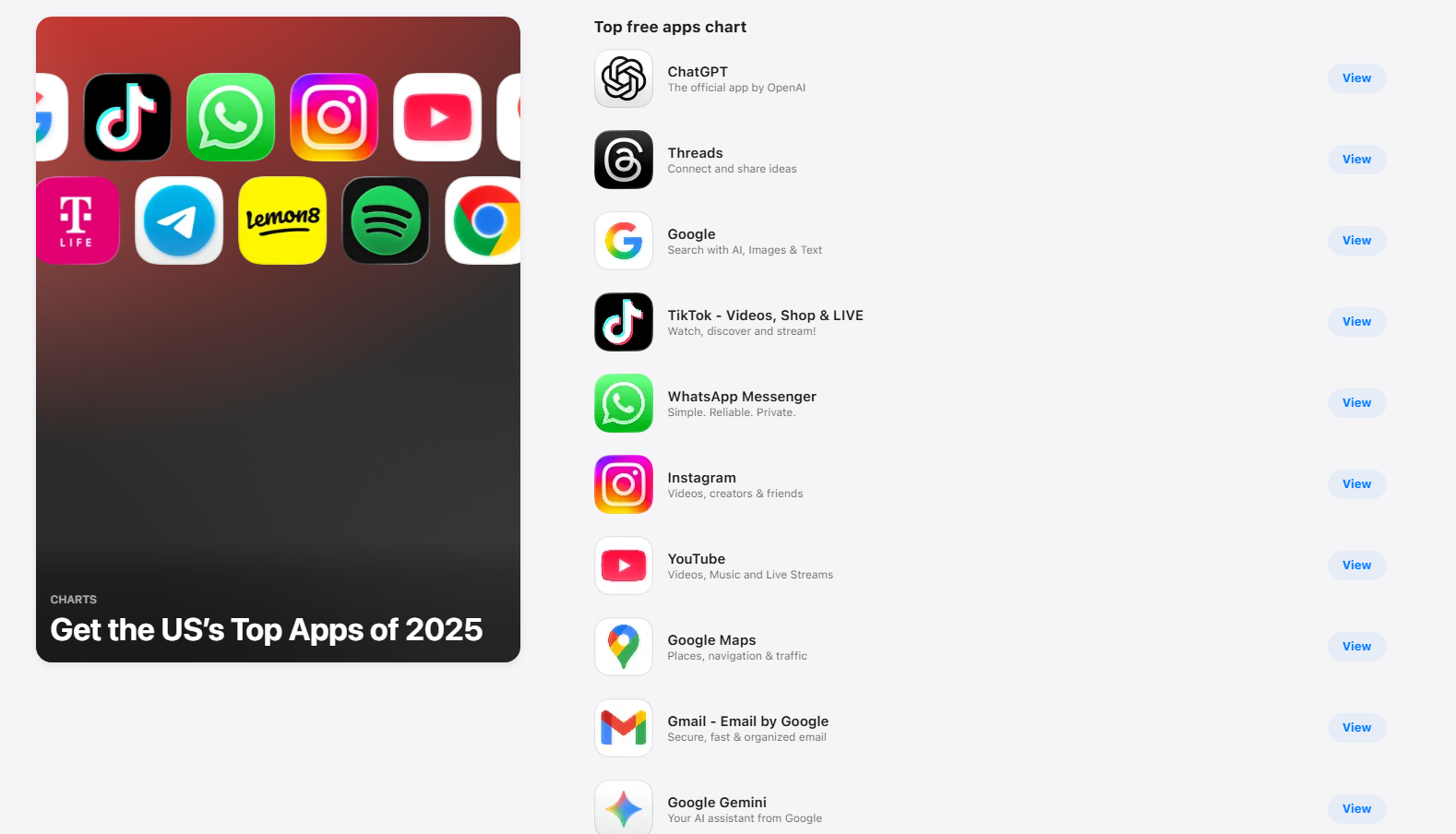 2. ChatGPT стал самым скачиваемым приложением в AppStore в 2025 году