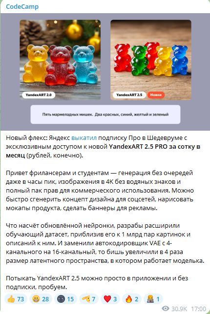 Базовая версия YandexART 2.5 бесплатна, а самая мощная единица в линейке YandexART 2.5 Pro доступна владельцам новой подписки «Про». Оформить её могут подписчики «Яндекс Плюс».