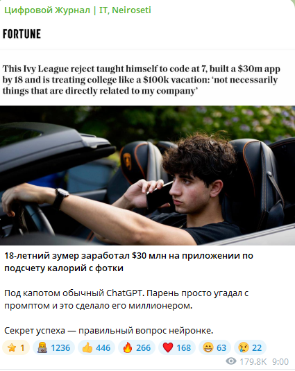 Сервис работает на базе ChatGPT, а разработал его 18-летний американец Заг Ядегари — как пишут в сетях, парень придумал удачный промпт и тем самым облегчил жизнь многих людей. Разработка уже принесла основателю $30 млн (2,5 млрд рублей).