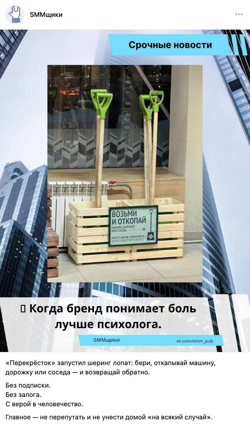 #5 Перекрёсток запустил шеринг лопат