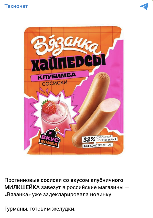 #3 Бренд «Вязанка» выпустит сосиски со вкусом клубничного коктейля