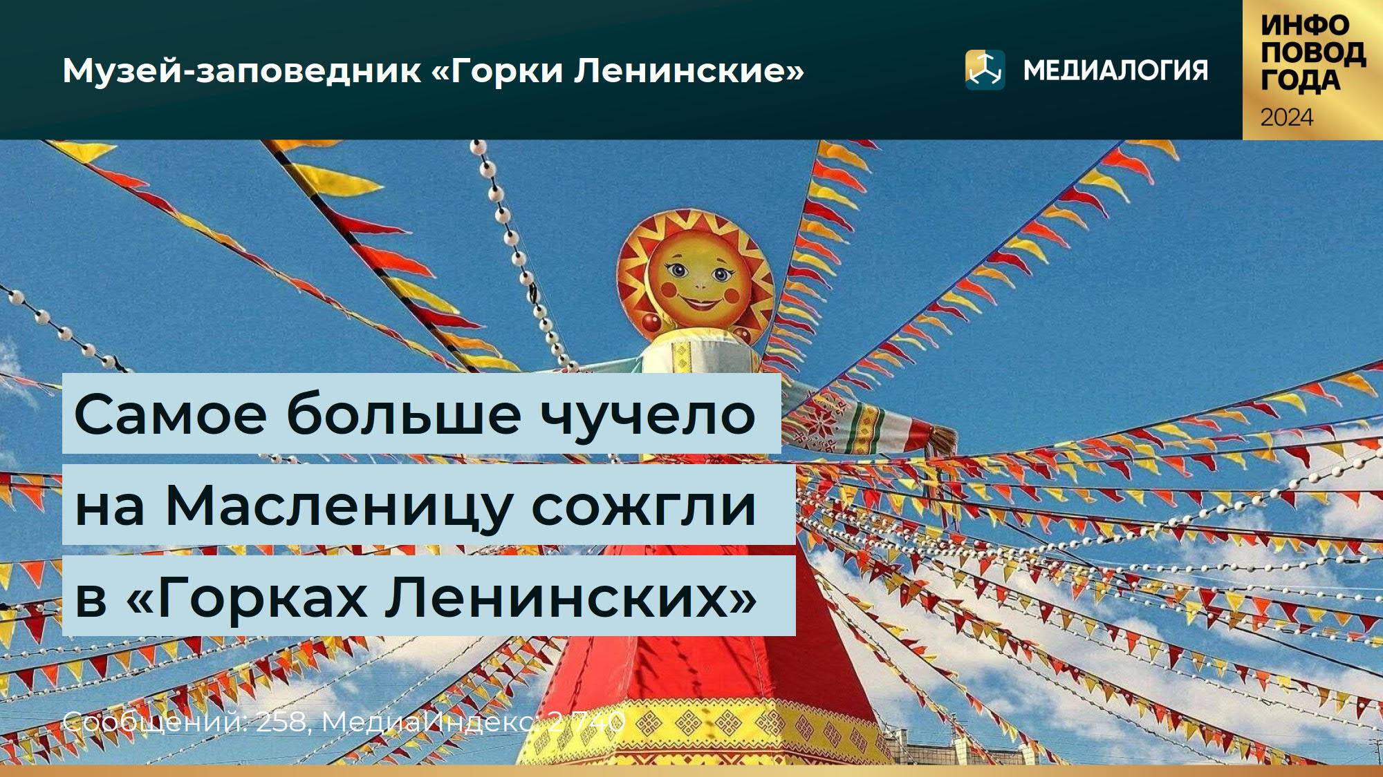 2. Инфоповоды взвешиваются по показателям количества сообщений и МедиаИндексу наиболее яркие включаются в число победителей исследования.